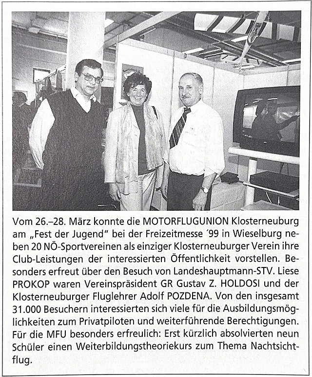 Der mit der Teilnahme an der Ausstellung sehr zufriedene Präsident GR Gustav Z. Holdosi: „Ich freue mich, dass die niederösterreichische Freizeitmesse eine derartige Begeisterung für den Motorflugsport ausgelöst hat“.