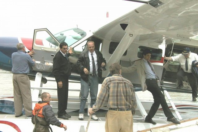 4. Langsam arbeitet sich das Flugzeug an die Anlegestelle