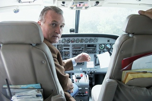 6. Klosterneuburgs Bürgermeister Dr. Schuh im Cockpit einer nagelneuen Cessna Caravan, die eigens für diesen Zweck direkt aus den USA eingeflogen war