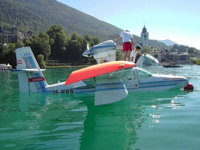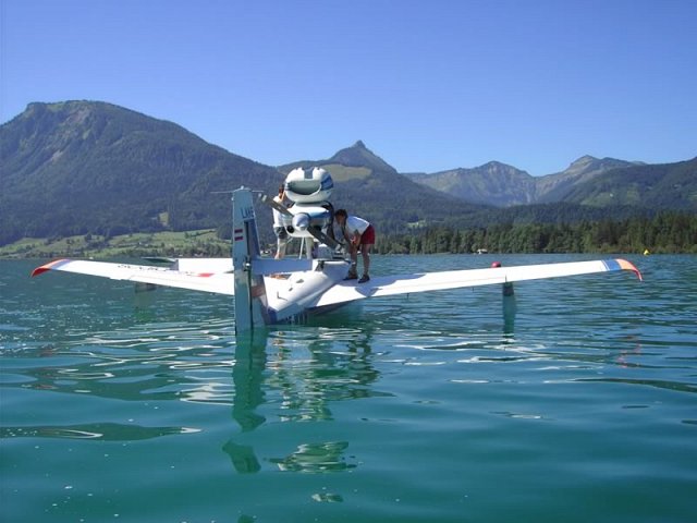 Im Rahmen der SCALARIA Air-Challenge wasserten Gustav Z. HOLDOSI mit Werner SCHEURINGER als Co-Pilot vor dem Eventhotel. Viele Promis waren vor Ort und es war ein Spektakel der Sonderklasse – und das wieder in Österreich, der Wiege des Wasserfluges.