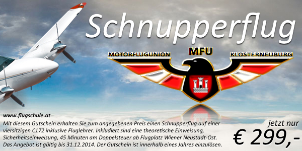 SCHENKEN SIE JETZT EINEN SCHNUPPERFLUG BEI DER MOTORFLUGUNION KLOSTERNEUBURG