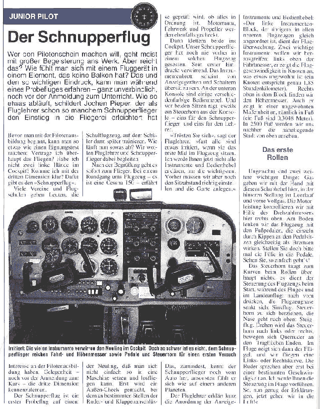 Wie ein Schnupperflug ablaufen kann und was die Medien darüber berichten lesen Sie bitte nachfolgend: